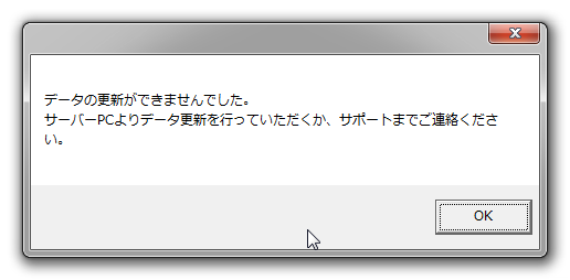 なお、サーバPC・親機以外で更新する場合、以下のようなメッセージが表示される場合があります。
