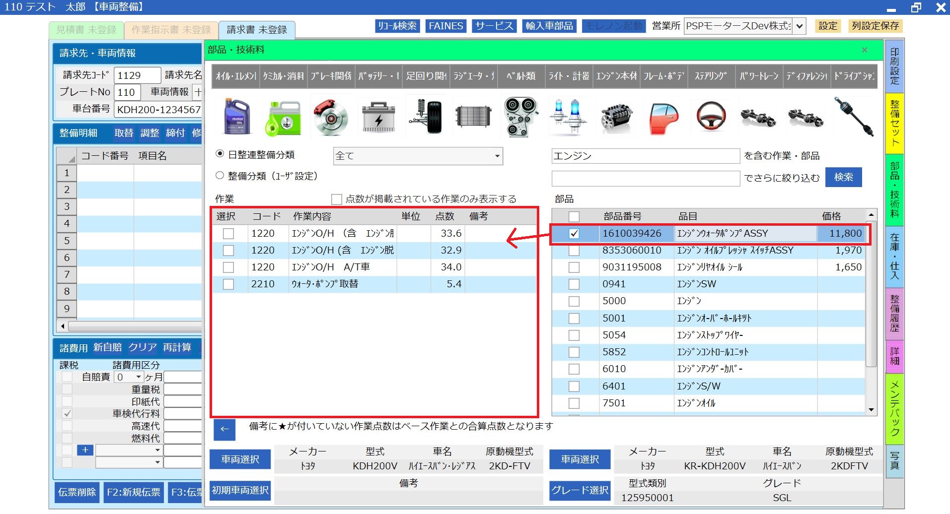 └イラスト選択は作業を絞り込む機能です。(部品は絞り込まれた作業に紐づくものを表示しています)