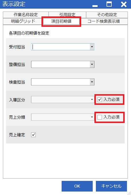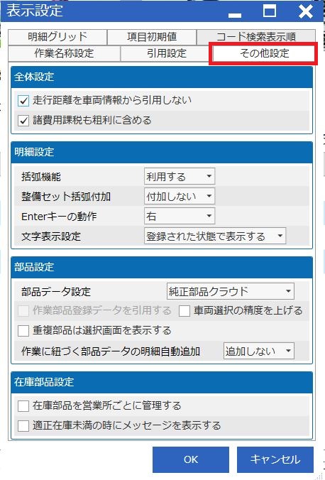 5.整備伝票入力 設定ボタン内(その他設定タブ)の整理